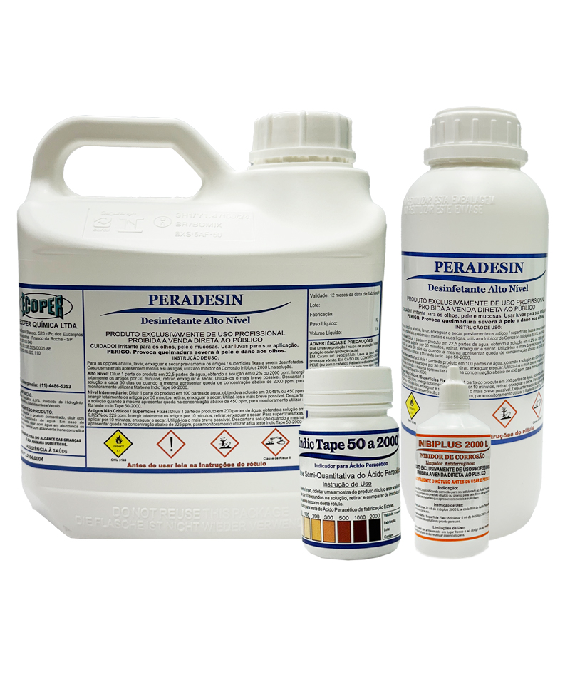 Superfície Fixa: Diluir 1 parte de produto para 200 partes de água, obtendo a solução em 0,22% ou 225 ppm. Tempo de Contato: 10 minutos. - Acompanha: Inibidor de corrosão e fita indicadora