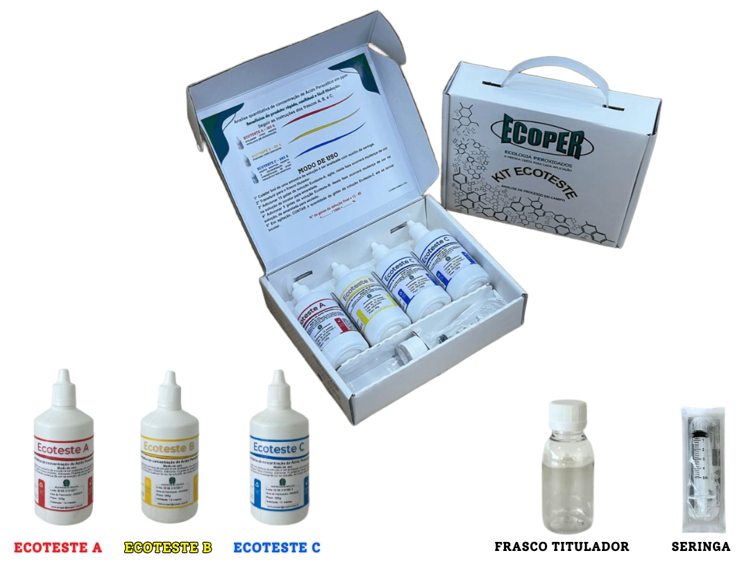 O Kit Ecoteste oferece uma metodologia simples, rápida e visual, indicada para análises de controle e monitoramento, dispensando o uso de equipamentos analíticos.